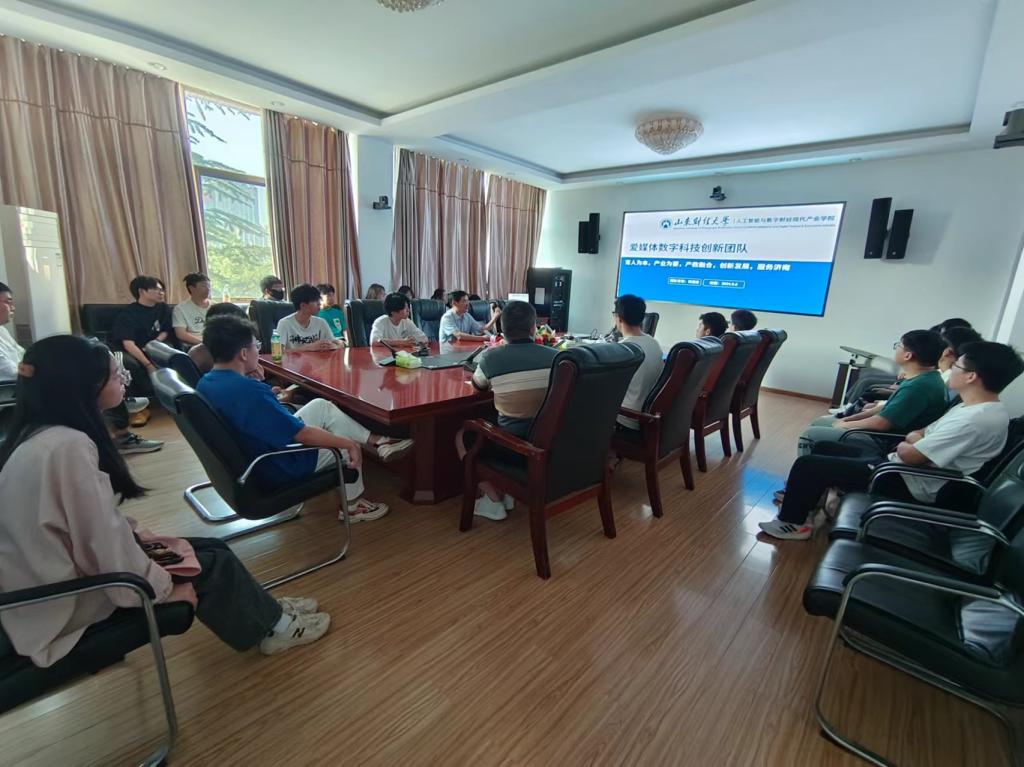 燕山校区1号教学楼1406会议室隆重举行爱媒体数字科技创新团队成立大会,会议由计算机科学与技术学院、人工智能与数字财经现代产业学院院长韩慧健教授主持。