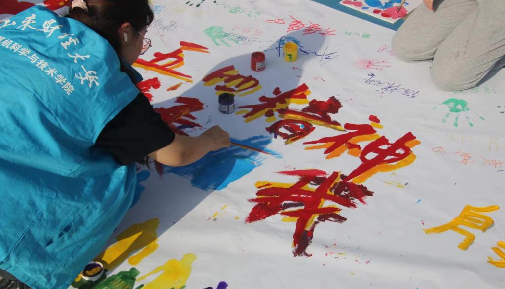 计算机科学与技术学院组织学院师生在燕山校区喷泉广场开展了一场别开生面、色彩纷呈的“绘梦五四 共筑青春巨画”活动。