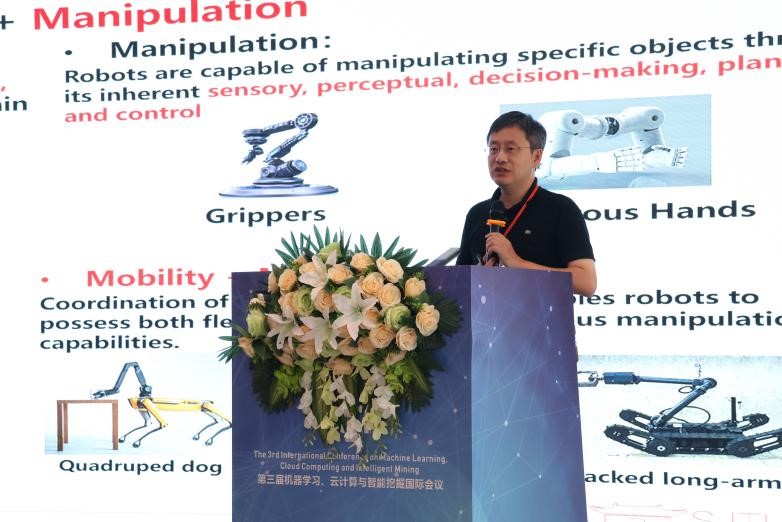 会议邀请了众多业内知名学者进行主题报告。首先,清华大学孙富春教授带来了题为“具身智能的研究进展与思考”的报告。他详细介绍了基于大模型的具身智能在3C生产线中的应用。