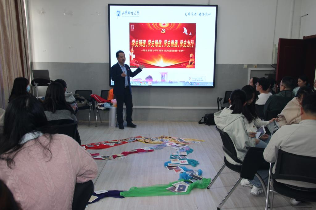 4月15日下午,学院特邀校党委组织部副处级组织员刘洪涛,为学院学生党员带来了一场沉浸式的表达性团体党课。学院党委副书记吕海霞主持,40余名学生党员和教师代表参与了本次党课学习。
