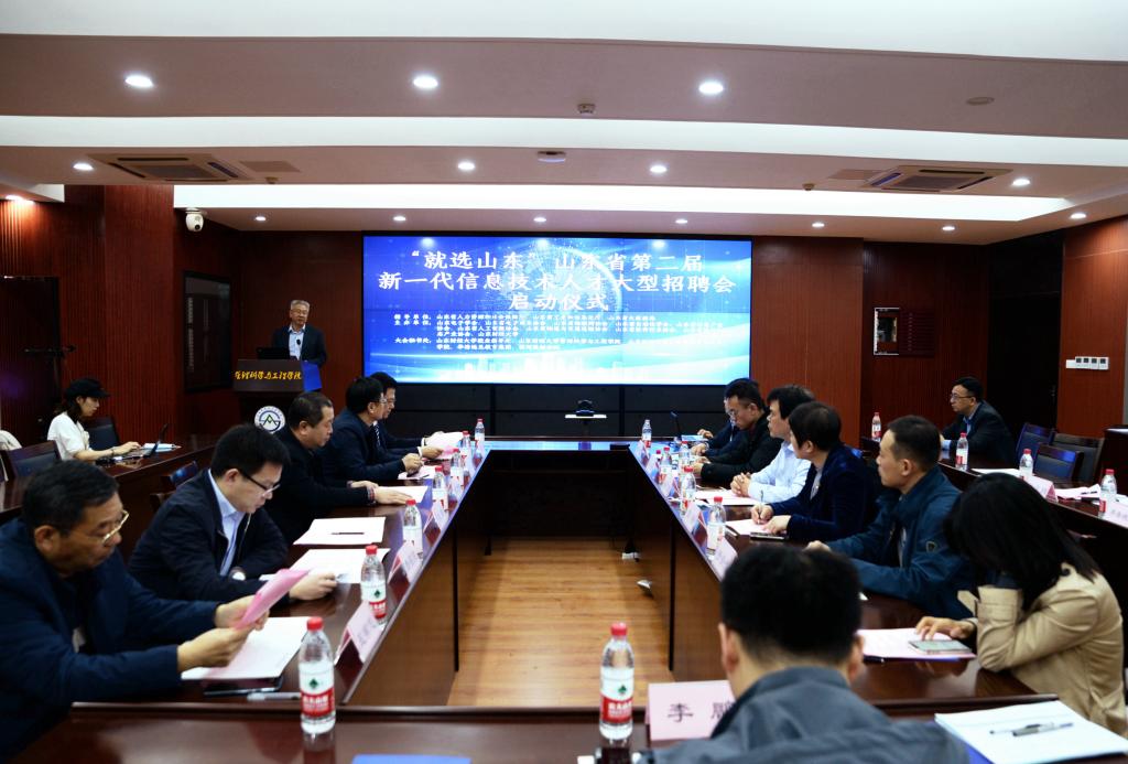 就业指导处、计算机科学与技术学院、管理科学与工程学院具体承办的“就选山东”山东省新一代信息技术人才线上招聘会启动仪式,在燕山校区逸夫楼举行。副校长张新,山东省人力资源和社会保障厅公共就业和人才服务中心就业服务处,山东省工业和信息化厅软件与信息服务处,各协会组织的会长或秘书长,学校就业指导处杨哲、计算机科学与技术学院党委书记王有志、管理科学与工程学院党委书记李军出席了仪式,30余所参与高校相关院系的师生在线上观看了仪式。
