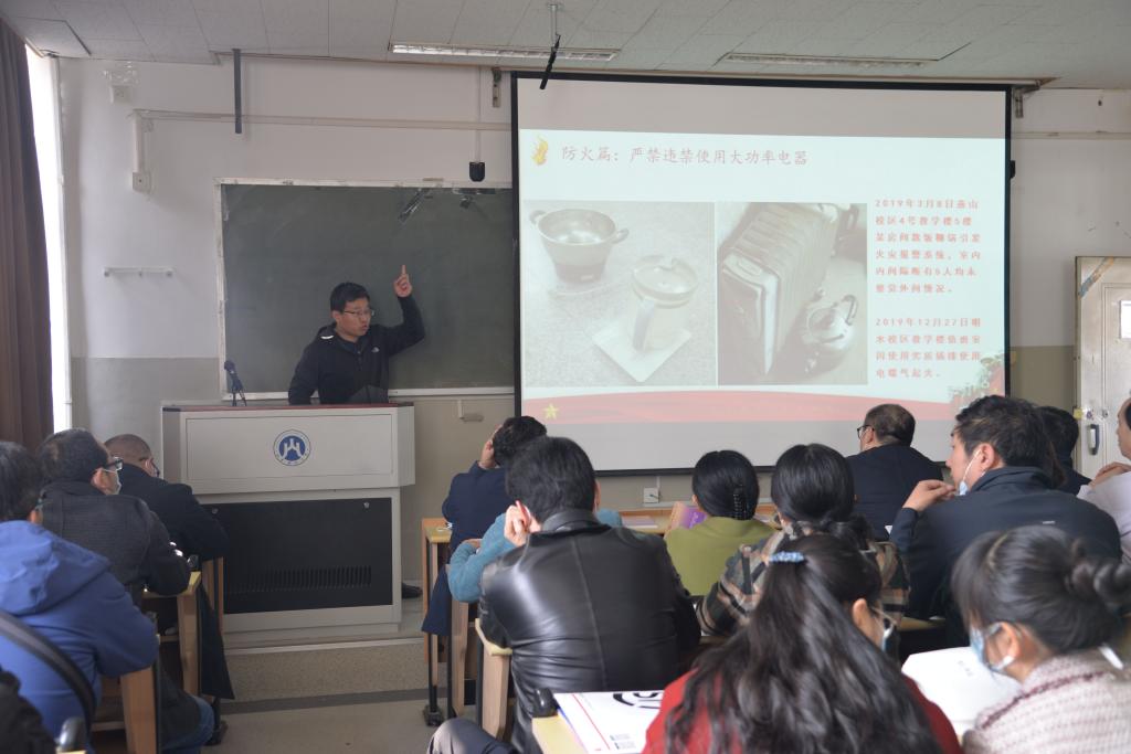 本次会议是学校春季消防安全大排查、大整治工作的一部分,通过培训,增强了学院师生的安全责任意识和火灾防范能力,提高了他们面对突发灾害时的应急处理手段,使每个教职员工都清楚地认识到,不论是在单位还是在家里,都要预防在前,防患于未然。