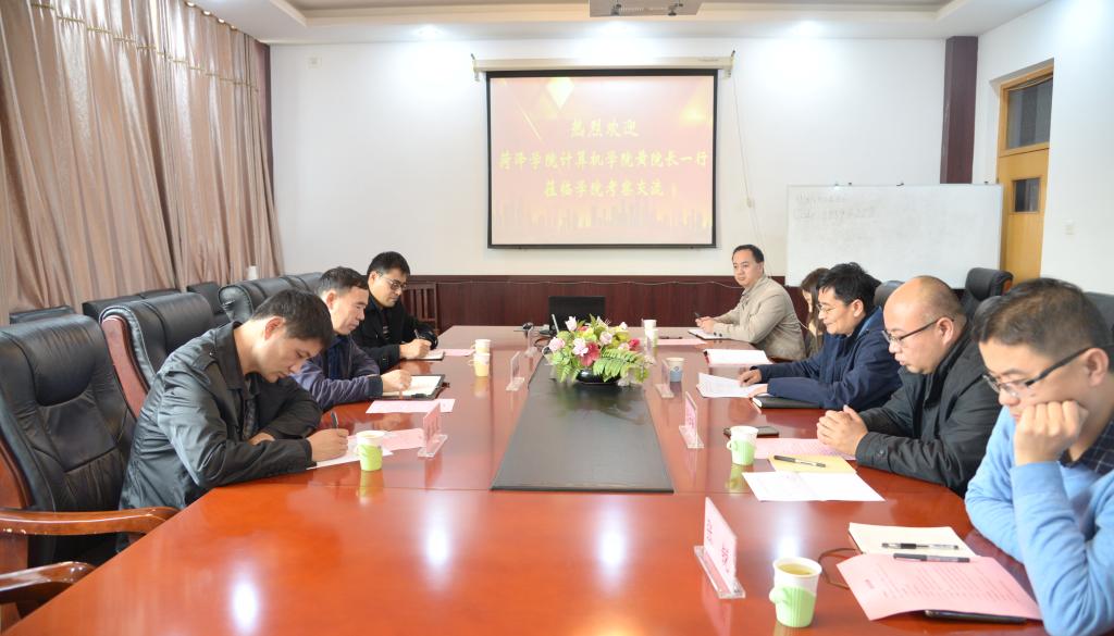 11月20日下午,菏泽学院计算机学院院长黄复贤,网络工程系副主任黄玉文和计算机科学系副主任刘文锋到访我、学院洽谈合作发展事宜。学院院长韩慧健,副院长张云峰、林培光,党委副书记吕海霞,院长助理张锐出席座谈会。