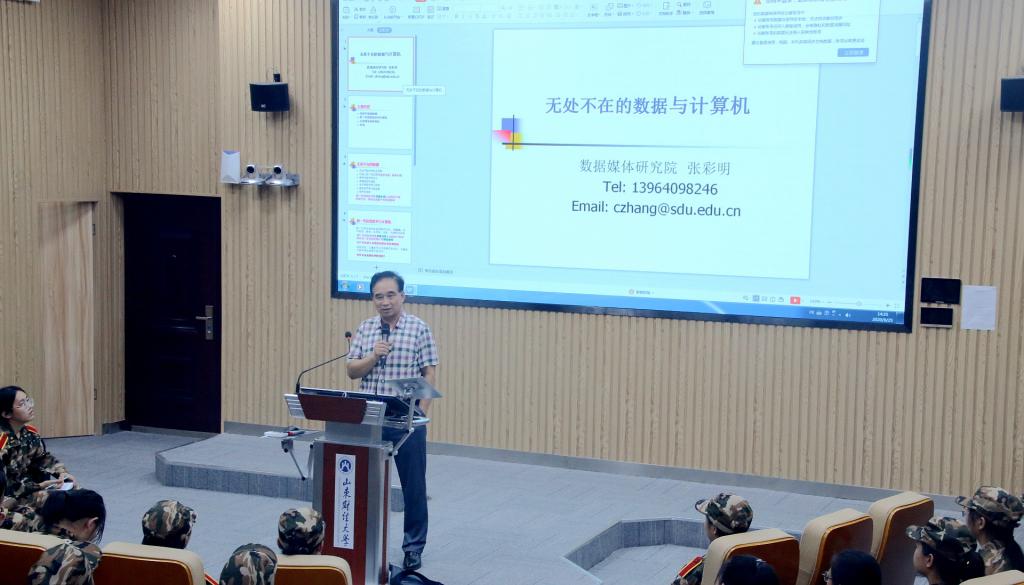9月25日下午,学院邀请数据媒体研究院张彩明教授为2020级新生作了“无处不在的数据与计算机”专题报告。报告由学院院长韩慧健主持,院党委副书记吕海霞、辅导员任楠出席报告会,2020级全体新生参加。