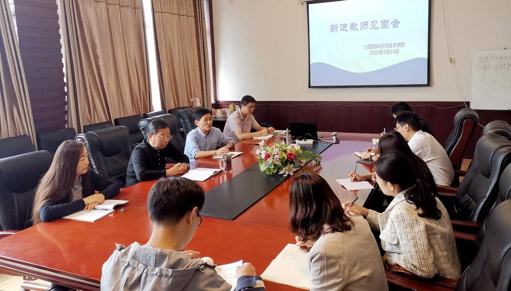 会议由韩慧健院长主持。会上,韩院长对新进教师加入计算机科学与技术学院这个大家庭表示热烈欢迎。他指出人才培养、科学研究、社会服务、文化传承与创新是高校的四大基本职能,希望大家围绕人才培养这一中心任务搞好教学、科研、社会服务等工作,不可偏废。教学上,大家要主动向老教师学习,积累教学经验,搞好教学研究,积极申报教研课题;不止步于课堂教学,致力于培养一专多能型人才,以工程教育认证要求为标准,切实提高教学质量。科研上,大家要认真进行科学研究,凝练研究方向,与学校的发展相契合,开展应用型研究,服务社会、服务经济。社会服务上,大家要发挥各自专业优势,以教学科研为基础,丰富服务内容、拓展服务形式、提升服务水平。文化传承与创新上,大家要传播中国优秀文化,传承“中国精神”,做好“宣传者”和“践行者”。同时大家要尽快转变角色,树立良好的师德师风,做好学生健康成长的引路人;要有历史担当、责任担当,对自己负责、对家人负责、对集体负责、对社会负责。