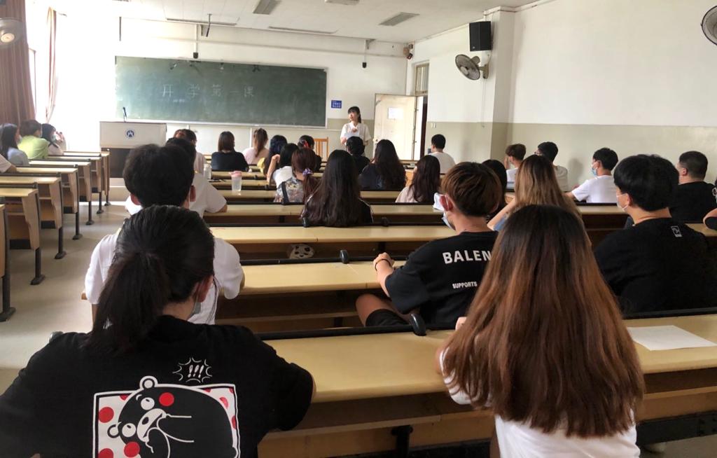 2020年8月31日,学院辅导员按照疫情防控标准和要求,采取线上、线下结合的方式,一部分同学在教室间隔而坐,一部分同学在宿舍进行线上视频会议,同步收听班会。班会内容主要分为三个部分:第一部分是通过简单分析国内国际疫情形势,提高同学们疫情防控意识,强调在疫情面前,无国界、无特殊,不论贫贱、富贵,尤其是“开学”并不意味着疫情已经过去,而是抢在秋冬季来临,利用这段疫情平稳期,尽一切努力让同学们回归校园,回归正常的学习、生活环境,全体师生绝对不能有一丝一毫松懈,同时也为接下来引导同学们按要求响应学校防控部署做好铺垫。