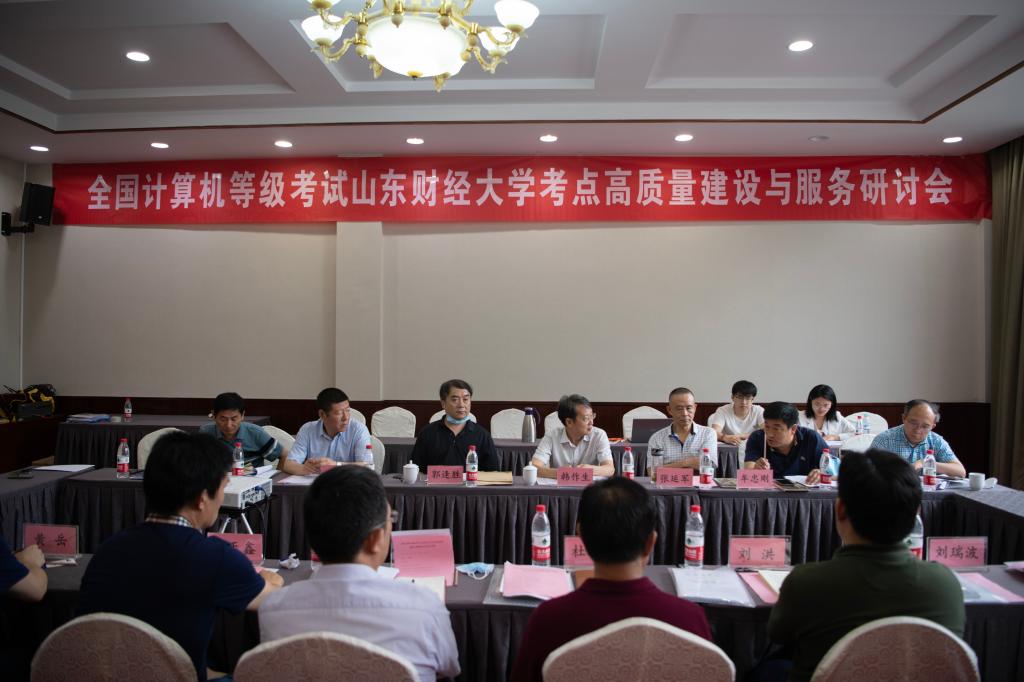 考点高质量建设与服务研讨会在燕山校区学景大酒店三楼会议室召开,会议邀请山东省教育招生考试院张延军副处长、郭逢胜副处长,济南市教育招生考试院牟忠刚副院长、黄岳主任出席,我校副校长、全国计算机等级考试领导小组组长韩作生教授及我校全国计算机等级考试领导小组全体成员出席会议,会议由学校计算机科学与技术学院院长、全国计算机等级考试领导小组副组长韩慧健主持。