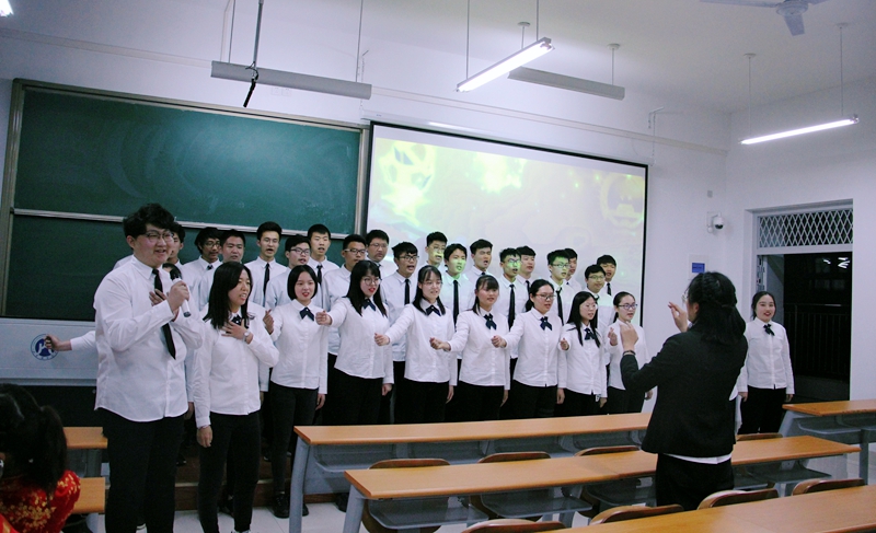 于圣井校区举办“灯塔引领•放歌新时代”——纪念五四运动100周年合唱比赛。学院辅导员张建、李晨露以及18级全体同学参与了本次比赛,同时邀请到校团委、学院团委、圣井校区其他学院老师代表以及校学生会文体部负责人担任本场比赛的评委嘉宾。