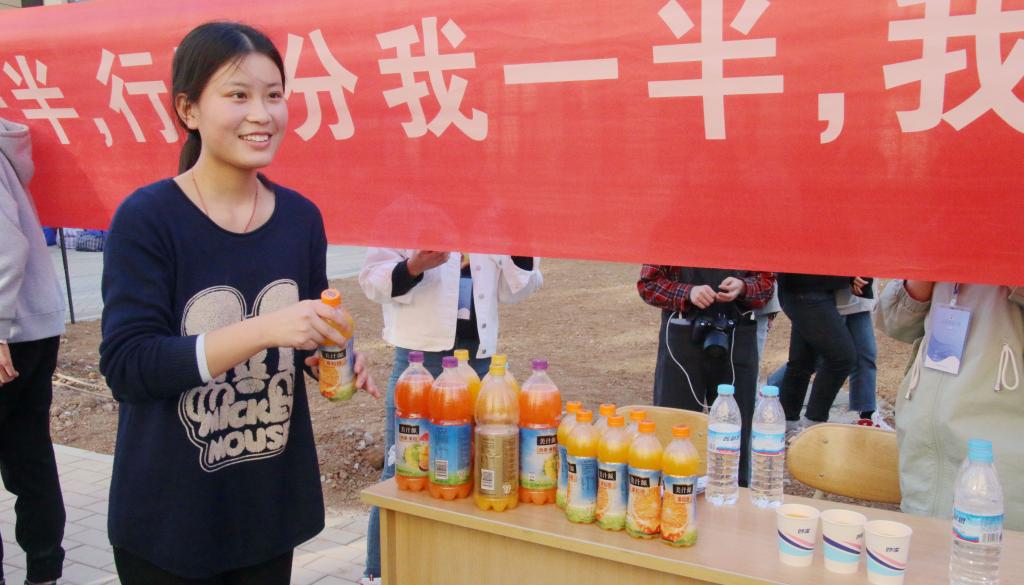 志愿者提前集合在新宿舍楼下,拉上醒目的标语“果汁分你一半,行囊分我一半”,准备好可口的果汁,热情期盼会计学院的到来。学院老师及志愿者们准备好的不仅是果汁,还有迎接亲人的满腔热情。在志愿者队伍中,不仅有男生力能扛鼎,也有女生巾帼不让须眉,三两成组,高效完成搬运工作。搬运结束后,有会计学院同学表示:“我本来以为到圣井又要自己一件一件将行李搬到宿舍,没想到人还没到,东西已经到宿舍了。因为都是自己一件一件搬下来的,知道有多累,真的为志愿者们点赞。”