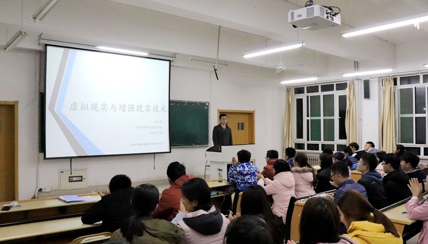 冉令强老师主讲的“虚拟现实与增强现实技术”专题知识讲座在圣井校区如期而至,学院2018级部分学生参加了本场讲座。