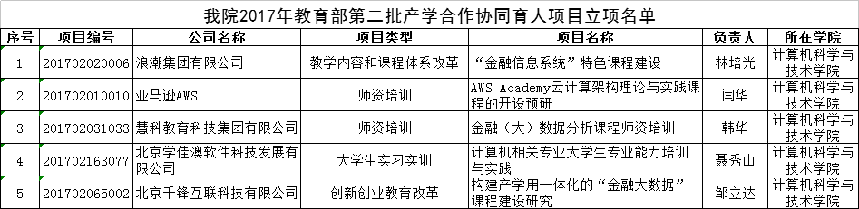 5个项目获批2017年第二批产学合作协同育人项目立项。