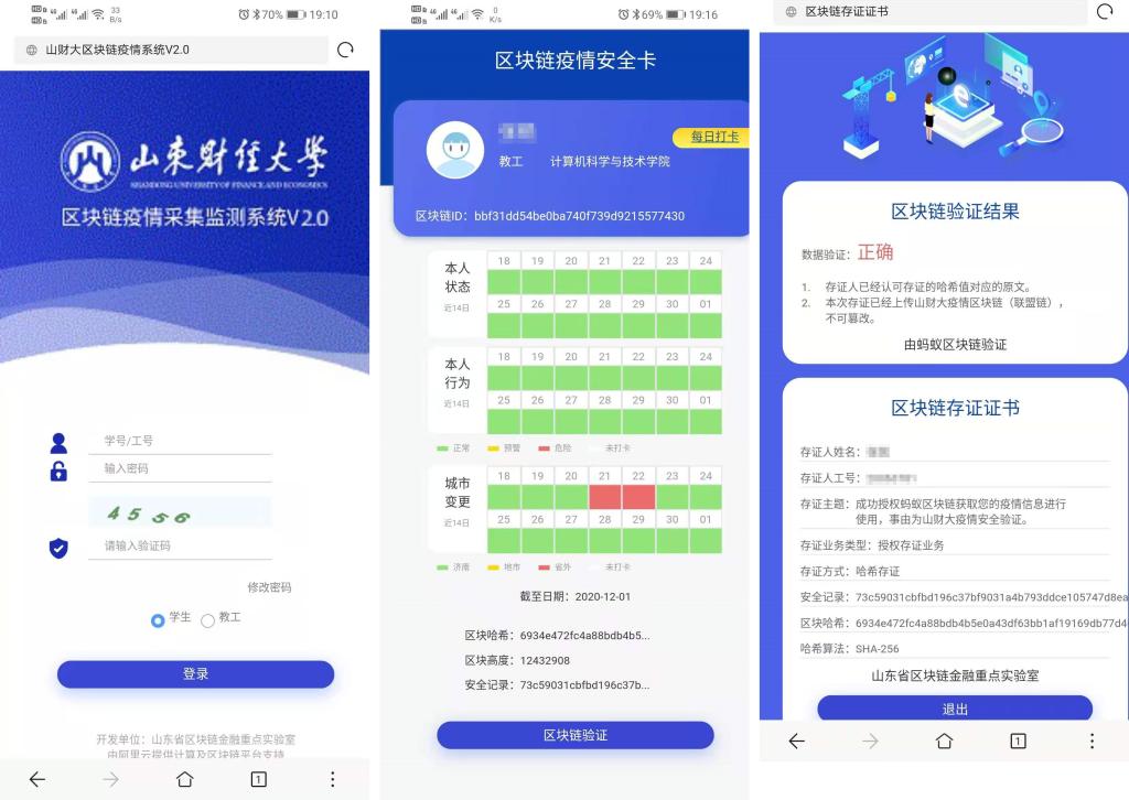 计算机科学与技术学院、山东省区块链金融重点实验室、阿里云、山东省立医院等技术力量协同研发部署。系统上线后,学校迅速通过微信公众号、企业微信以及学校B站公告