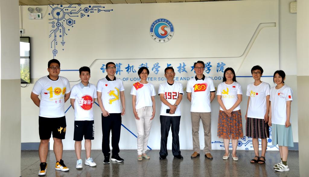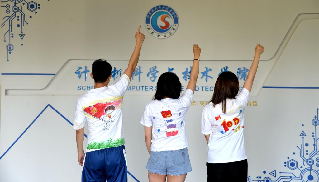 活动现场,师生们以巧妙的构思和娴熟的绘制技巧,把自己对党的祝福融入到作品的设计和创意之中,原本简单的白色文化衫被点缀一新,一幅幅红色主题绘画跃然其上。小小的红船承载着“美好如初同舟共,砥砺奋进新时代”的祝愿,层层的生日蛋糕传递着对中国共产党百年华诞甜蜜的祝福,萦绕“中国”的祥云传达着吉祥,写满代码的“党徽”诉说着计科人的浪漫,“1921-2021”清晰的镌刻着中国共产党的百年光辉历程、奋斗历程,鲜艳的红、耀眼的黄,无一不展现了师生们炽热的爱国情怀和对伟大祖国美好未来的无限憧憬。