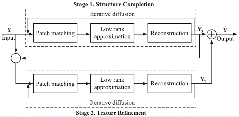 基于两阶段低秩近似的图像修补方法