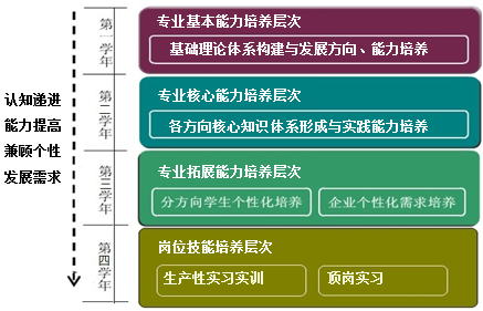 (3)个性化培养,因材施教:为满足学生多元化的兴趣和职业发展规划,课程体系设置了多个清晰的培养方向。学生可以根据自身特点和未来目标,自主选择相应的专业课程模块和特色项目。结合学院成熟的本科生创新团队培养机制,实现真正意义上的个性化培养,充分激发学生的学习潜能。